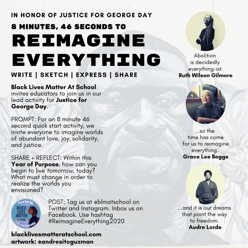 Join BLM at School educators, students and parents around the country in a national webinar and an eight minute and 46 second free write/draw to “reimagine everything.”