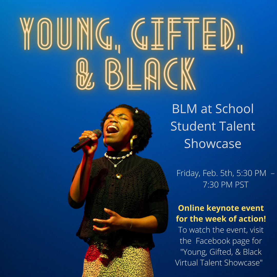 The Seattle area NAACP Youth Council (N-YC), Puget Sound Black Lives Matter at Schools, and Social Equity Educators (SEE) are proud to co-sponsor this year’s “Young, Gifted, & Black Student Talent Showcase,” one of the keynote event of the 2021 Black Lives Matter at School week February 1-5. This event will be held on-line from 5:30pm–7:30pm Pacific. You can visit the Facebook page and find the link or click this link to view the event: Online: us02web.zoom.us