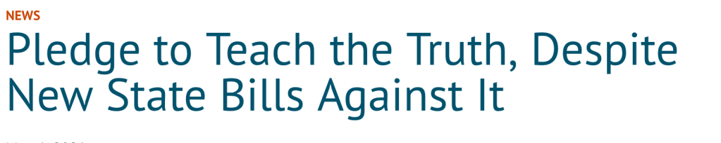 It’s time to begin preparing for civil disobedience and for teachers to openly defy these neo-McCarthyist laws that would have educators lie to students about the fact that our country was founded on the genocide of Native Americans and African peoples and that structural racism and other forms of oppression persists in many ways today.