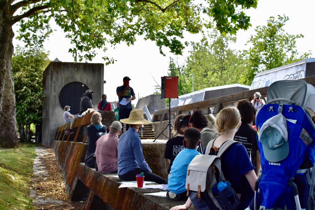One of the June 12 rallies occurred in Seattle and was organized by the Social Equity Educators, Washington Ethnic Studies Now and supported by other youth and parent organizations. Educator Bruce Jackson served as the MC for the day and led the march on a walking tour of places of historical significance to the struggle for racial justice in the Central District–the historically Black neighborhood in Seattle that had been red-lined, and is now being quickly gentrified. Below are the remarks that Seattle educator, BLM at School organizer, and Zinn Education Project member Jesse Hagopian prepared for the assembled crowd that day.