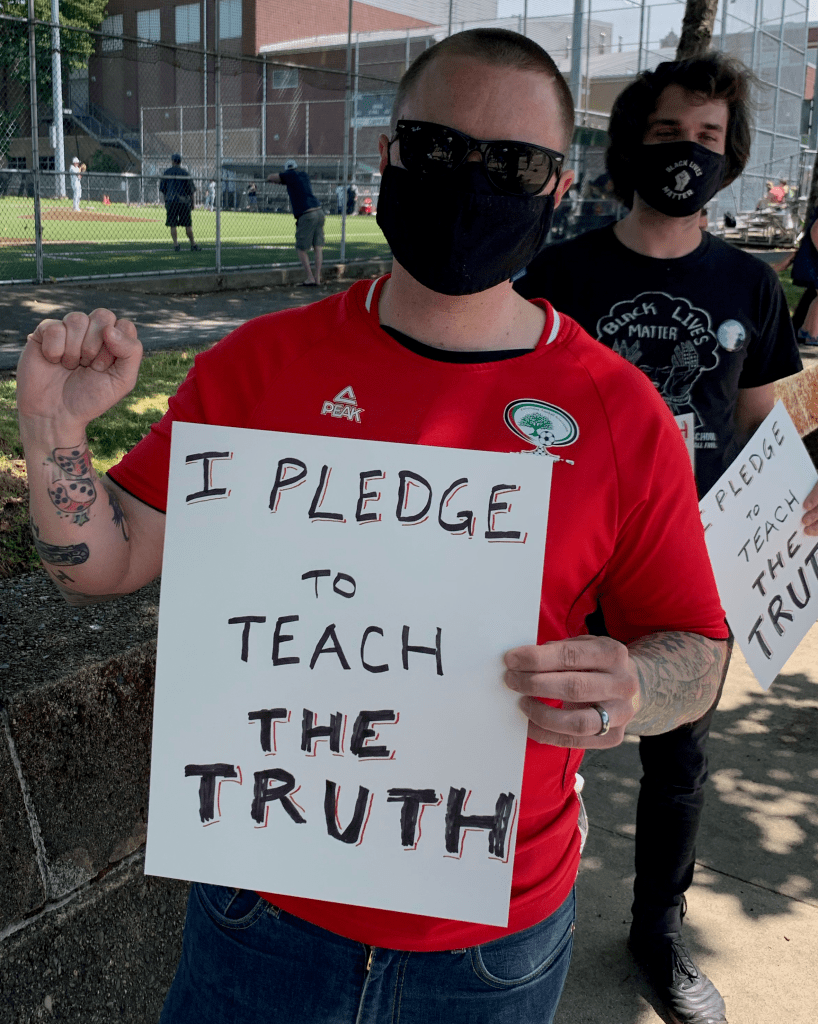 On January 12th, 2021, hundreds of teachers in over 40 different cities and towns joined a national day of action to #TeachTruth in opposition to the proliferation of laws being proposed by state legislators that would ban the teaching of structural racism, sexism, heterosexism, and other forms of oppression. Educators organized their rallies at historic sites to provide examples of the history that teachers would be required to lie about or omit if the GOP anti-history bills become law. The action was co-organized by the Zinn Education Project and Black Lives Matter at School and they have launched an online petition that has garnered over 4,000 signatures from educators from around the county who have pledged to teach the truth about racism and oppression regardless of the law. Already at least 6 states have passed legislation or other measures to prohibit the teaching about structural racism and 15 states have proposed this legislation.
