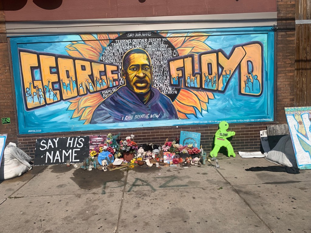 A couple of weeks ago I had the opportunity to visit the intersection of East 38th Street and Chicago Avenue in Minneapolis, Minnesota—the site of George Floyd Square, which has been created around the place where he was murdered. As we pulled up to the Square and I got out of the back seat of my Lyft, a group of preschool students ambled in front of me, hands clasped together bravely passing through the memorial to George that spills out of the street and onto the sidewalk. On the pavement that stretched out beside the children were a seemingly endless list of names of people who had been sacrificed on the altar of American white supremacy. These tender children’s feet trod on the many frustrations and aspirations of activists who had inscribed their beliefs onto the sidewalk—graffiti that declared, “Black Lives Matter,” “Viva la Revolución,” “Rest in Power George,” and, “We march, y’all mad. We sit down y’all mad. We speak up, y’all mad. We die y’all silent.” And looming in front of these young scholars was the Cup Foods grocery store—the very spot in front of which George had taken his last breath—cordoned off with barricades painted with handprints (the kind you make in preschool) and colorful text that seemed to take on a sacred significance: “Stop the Violence,” and “The People United, Will Never Be Divided.”