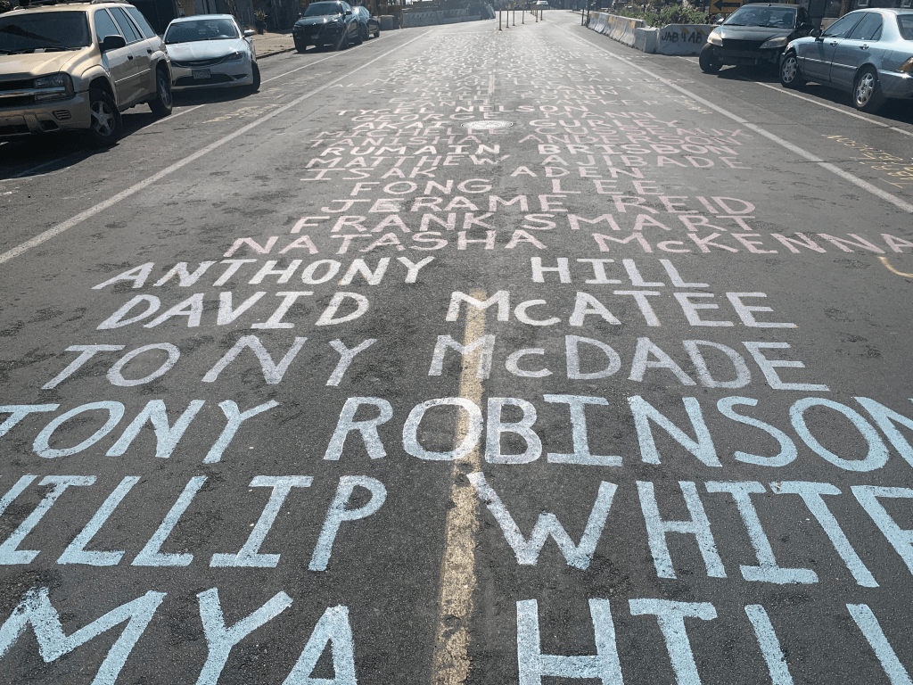 I stood there weeping, in a state of confusion, as I took in the incomprehensible contrast of these vibrant multiracial fledglings passing through a horrific murder scene where a Black man asked for his mom and pleaded for his life before being choked to death by the weight of system that bore down on a white officer’s shoulders as he pressed his knee into the man’s windpipe.
