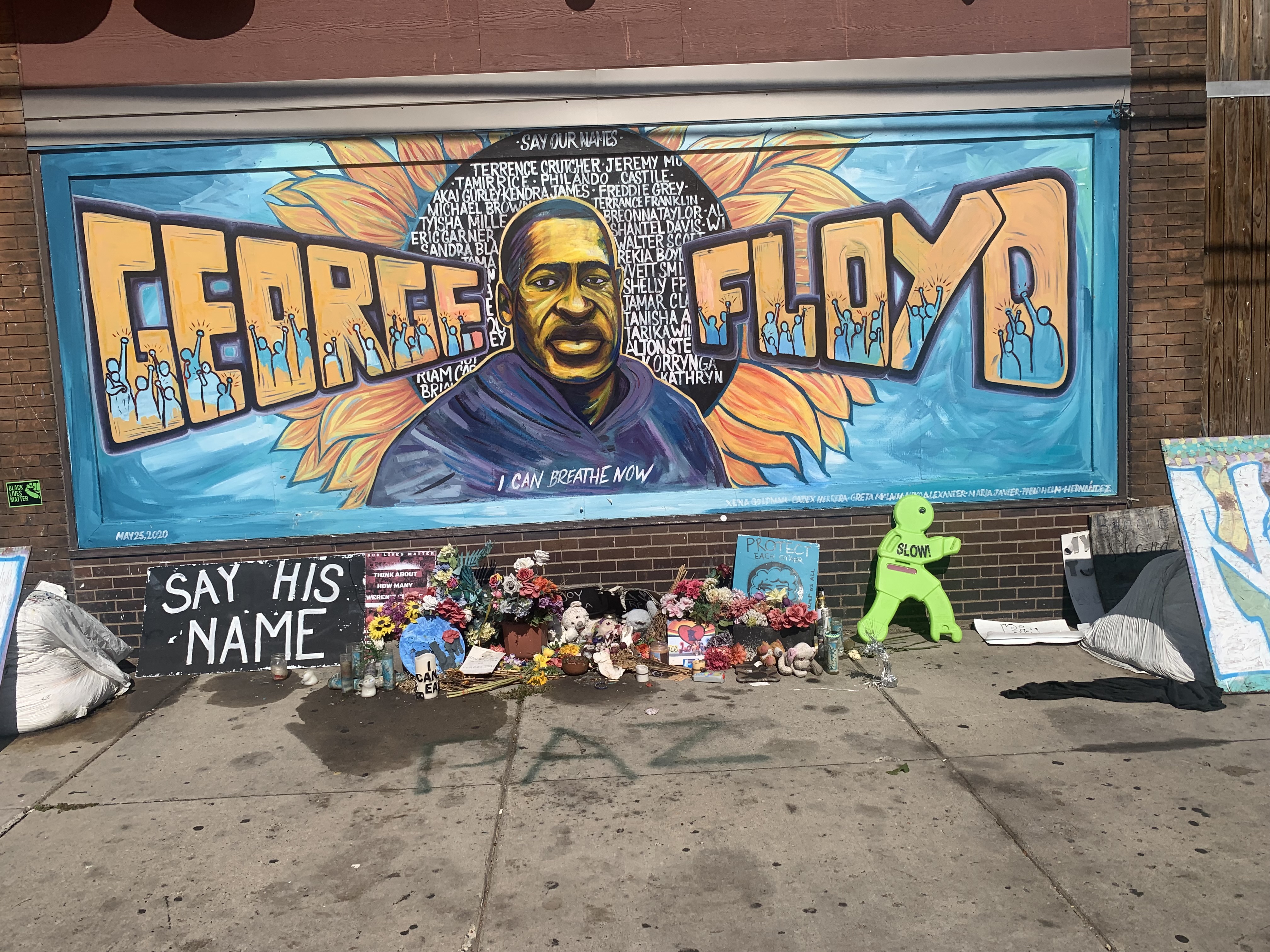 I stood there weeping, in a state of confusion, as I took in the incomprehensible contrast of these vibrant multiracial fledglings passing through a horrific murder scene where a Black man asked for his mom and pleaded for his life before being choked to death by the weight of system that bore down on a white officer’s shoulders as he pressed his knee into the man’s windpipe.