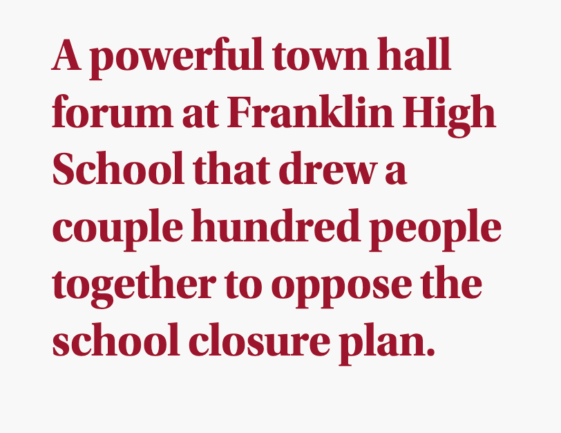 Mothballing a school isn’t just closing a brick-and-mortar edifice. It’s hanging a closed sign on the hopes of a community. It’s disrupting the relationships that our most vulnerable students rely on. We can’t close our way to quality schools. We can’t close our way to equity. We can’t close our way to justice. We can’t close our way to excellence. We can’t close our way to joy. We can’t even close our way to a balanced budget.
