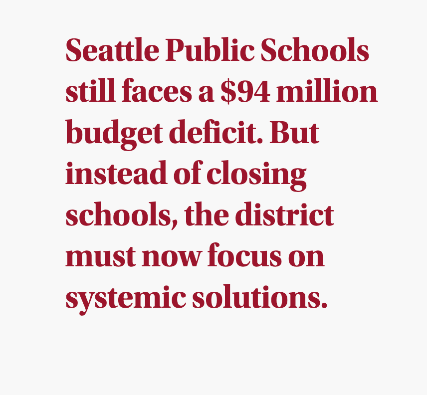 After initially proposing in spring to close up to 21 schools — and, under immense pressure, reducing that number to four — Seattle Public Schools (SPS) announced in late November that it was canceling all plans to close schools. Superintendent Brent Jones admitted he “no longer saw a pathway for this approach,” and emphasized the district’s commitment to the “needs and well-being of our students, families, and community.”