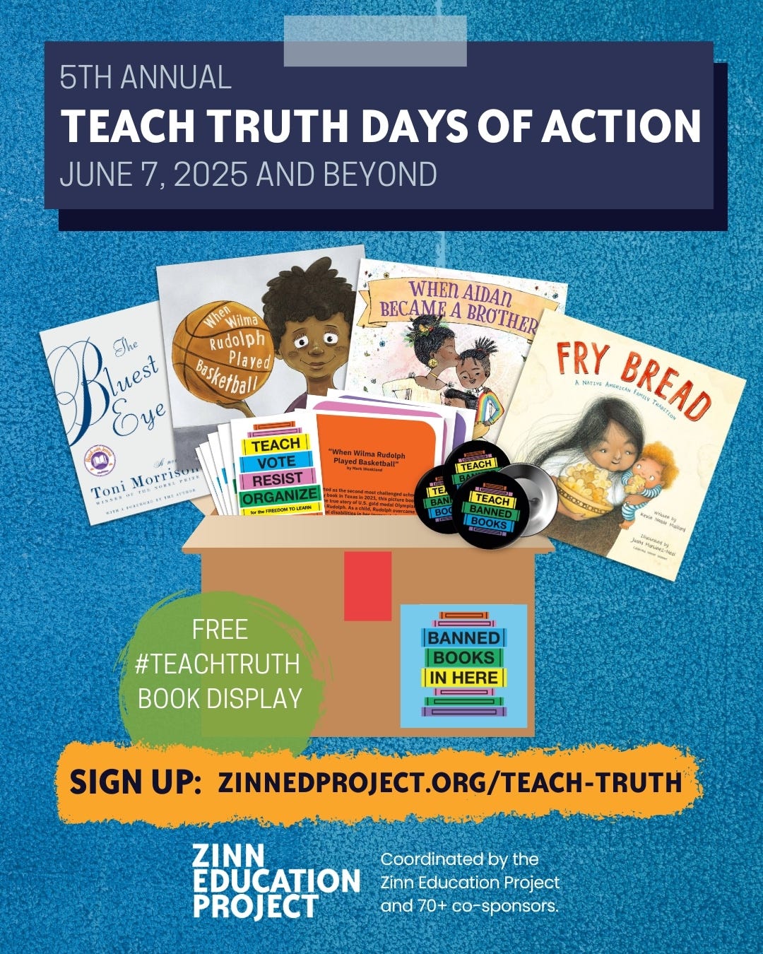 All events should use the hashtag #TeachTruth and can be shared with the Zinn Education Project for national promotion.