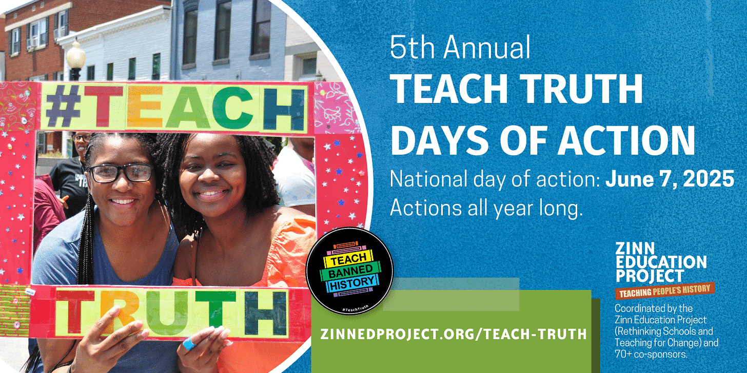 If you sign up to host a June 7th Teach Truth Day event through the Zinn Education Project, you’ll receive: